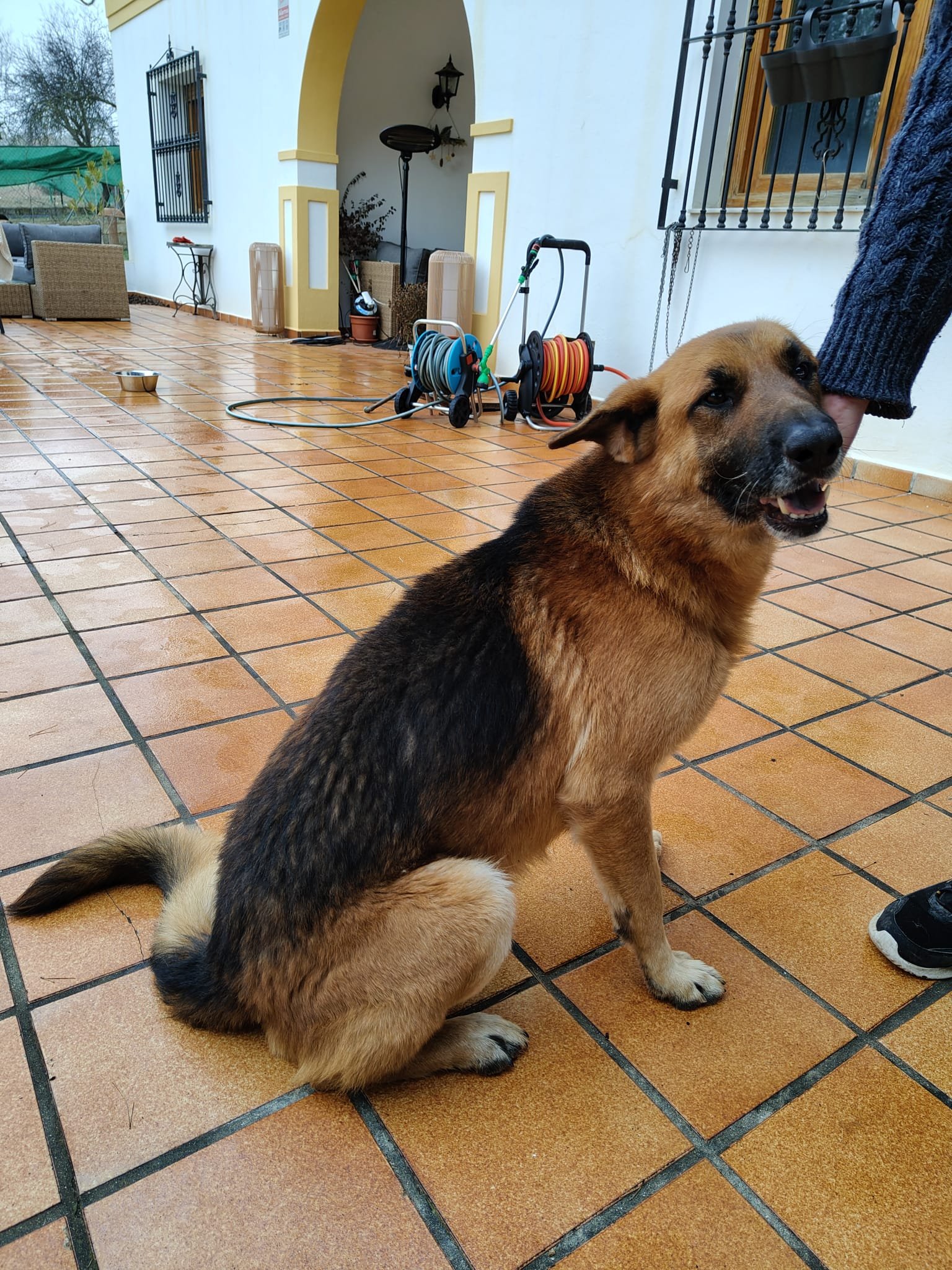 Antón es un pastor alemán de 10 años con un corazón inmenso. Pasó un tiempo abandonado a su suerte hasta que un voluntario decidió cambiar su historia y lo llevó al refugio. Ahora está en una casa de acogida, y lo que cuentan de él confirma lo que ya intuíamos: es un auténtico bonachón.