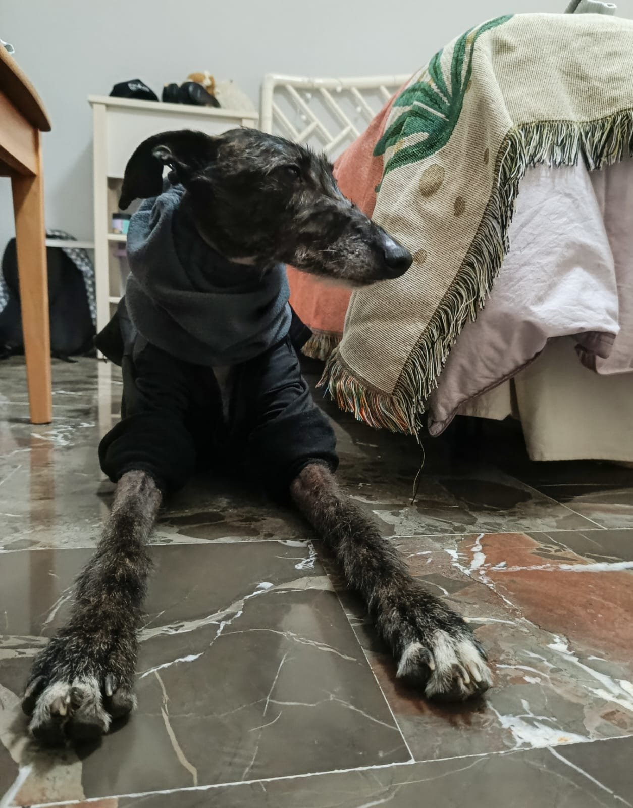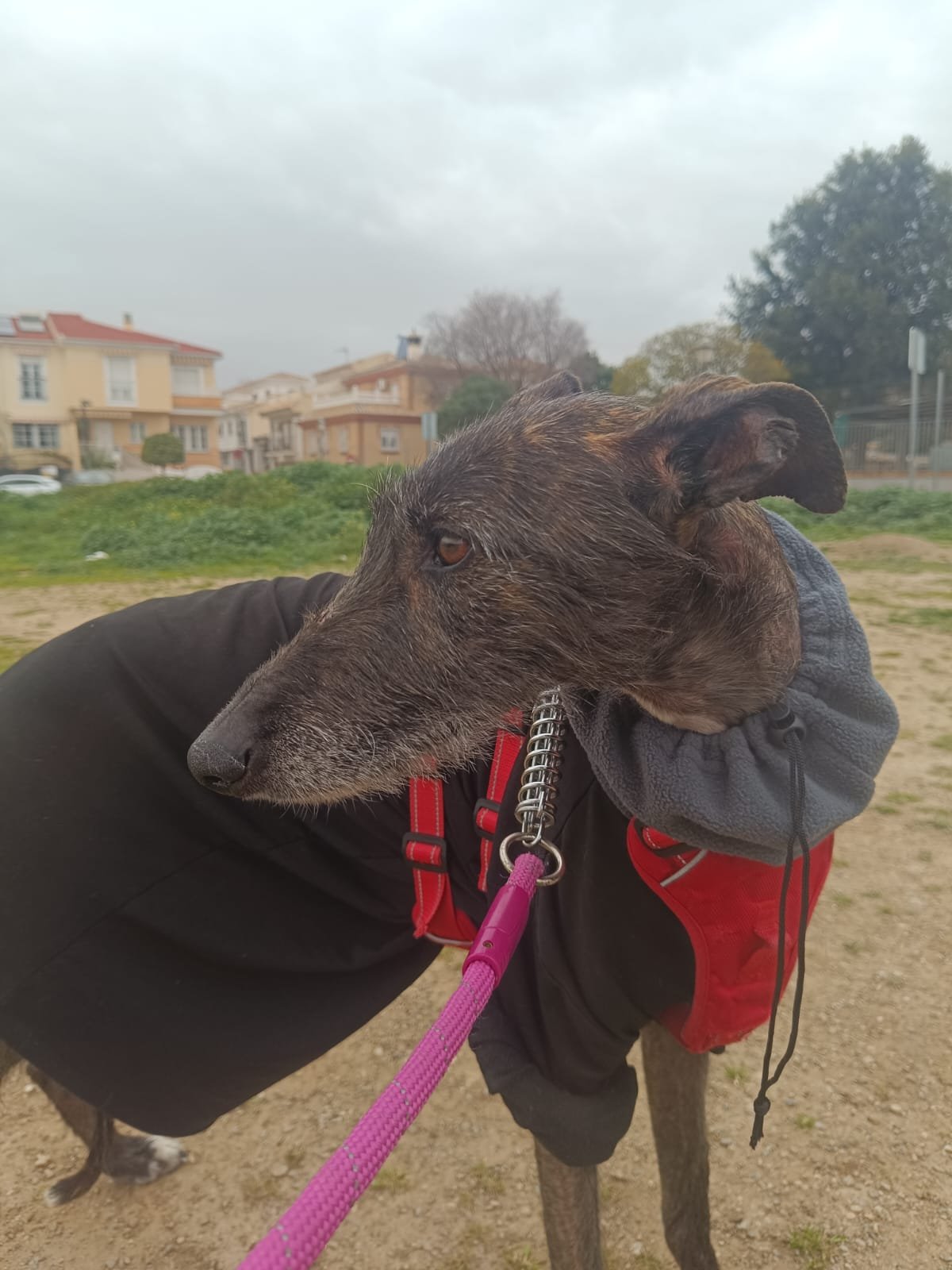 Fresa es una galguita buena, sensible y con ganas de confiar. Solo necesita una familia que entienda que el amor también es enseñar seguridad poco a poco. Cuando se sienta a salvo del todo, será una compañera tranquila y leal, de esas que se acomodan a tu lado y hacen del silencio algo bonito. 🐾🤍