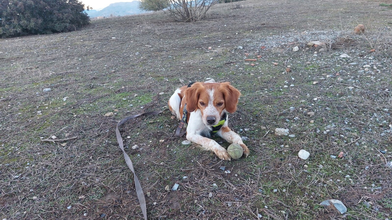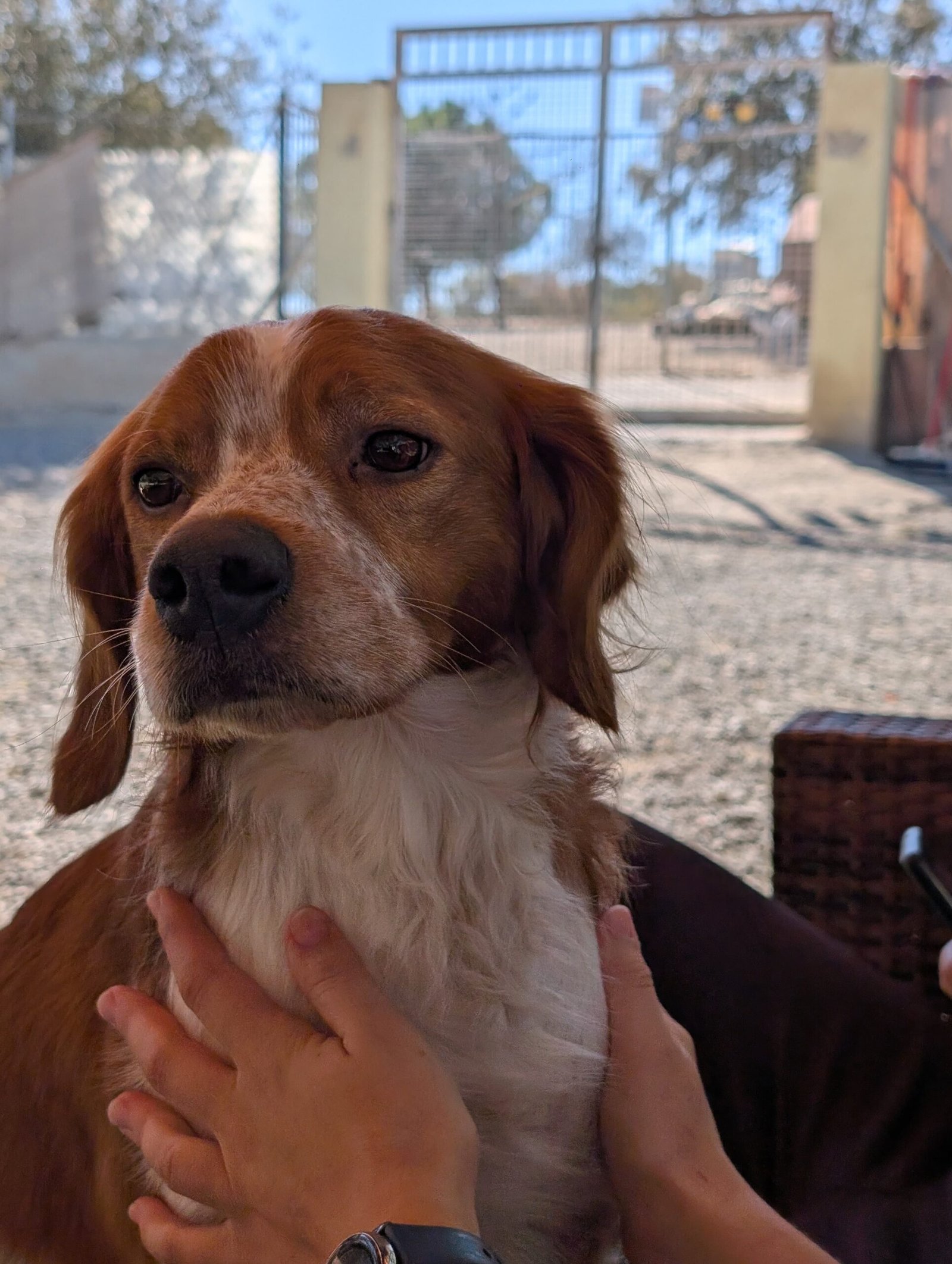 Yogui es un Bretón de 6 años que ha pasado su vida en soledad, aislado, saliendo únicamente para cazar. Cuando un perro crece así, aprende que el mundo es trabajo y estímulo, no vínculo. Y eso deja huella.