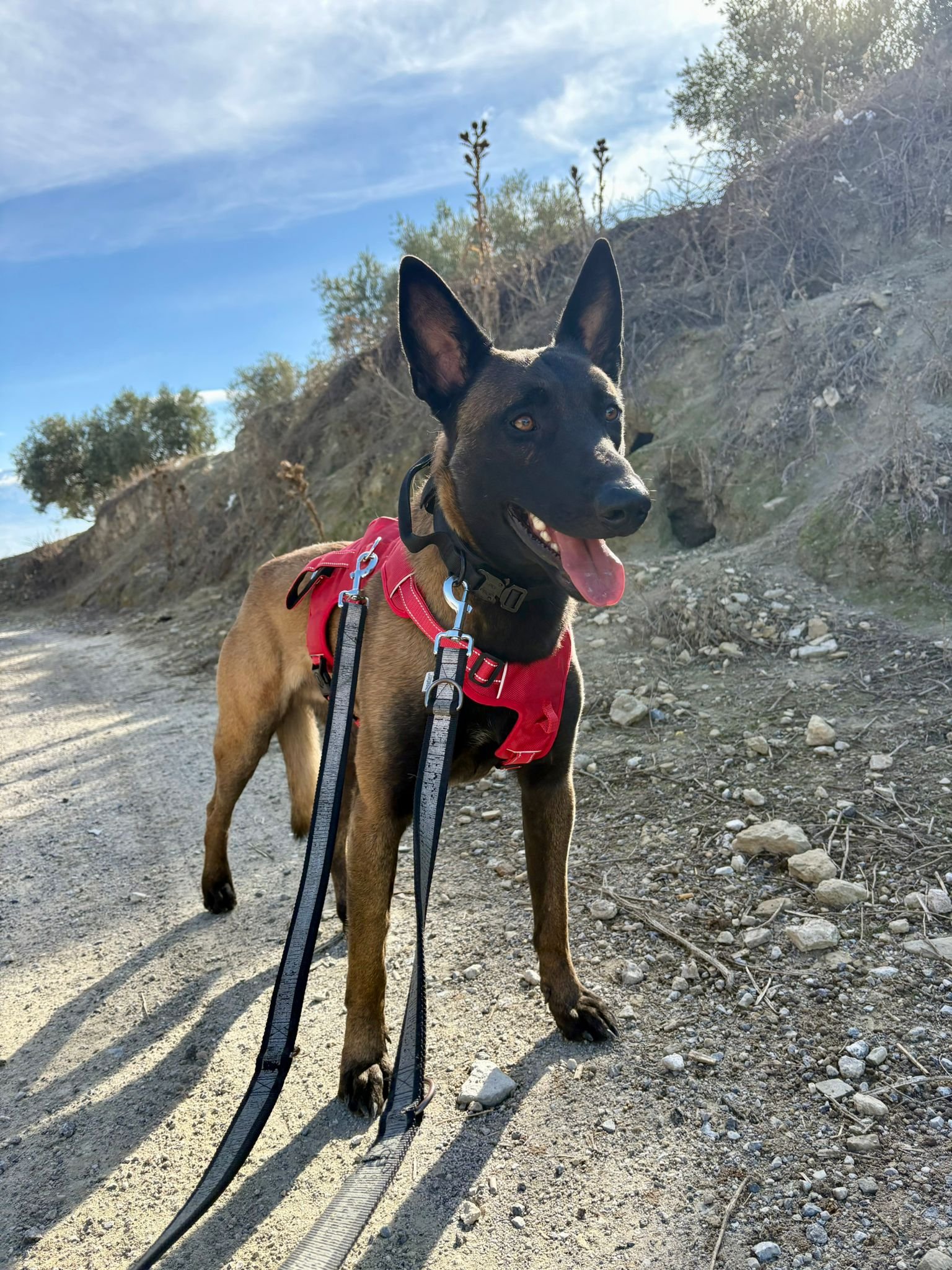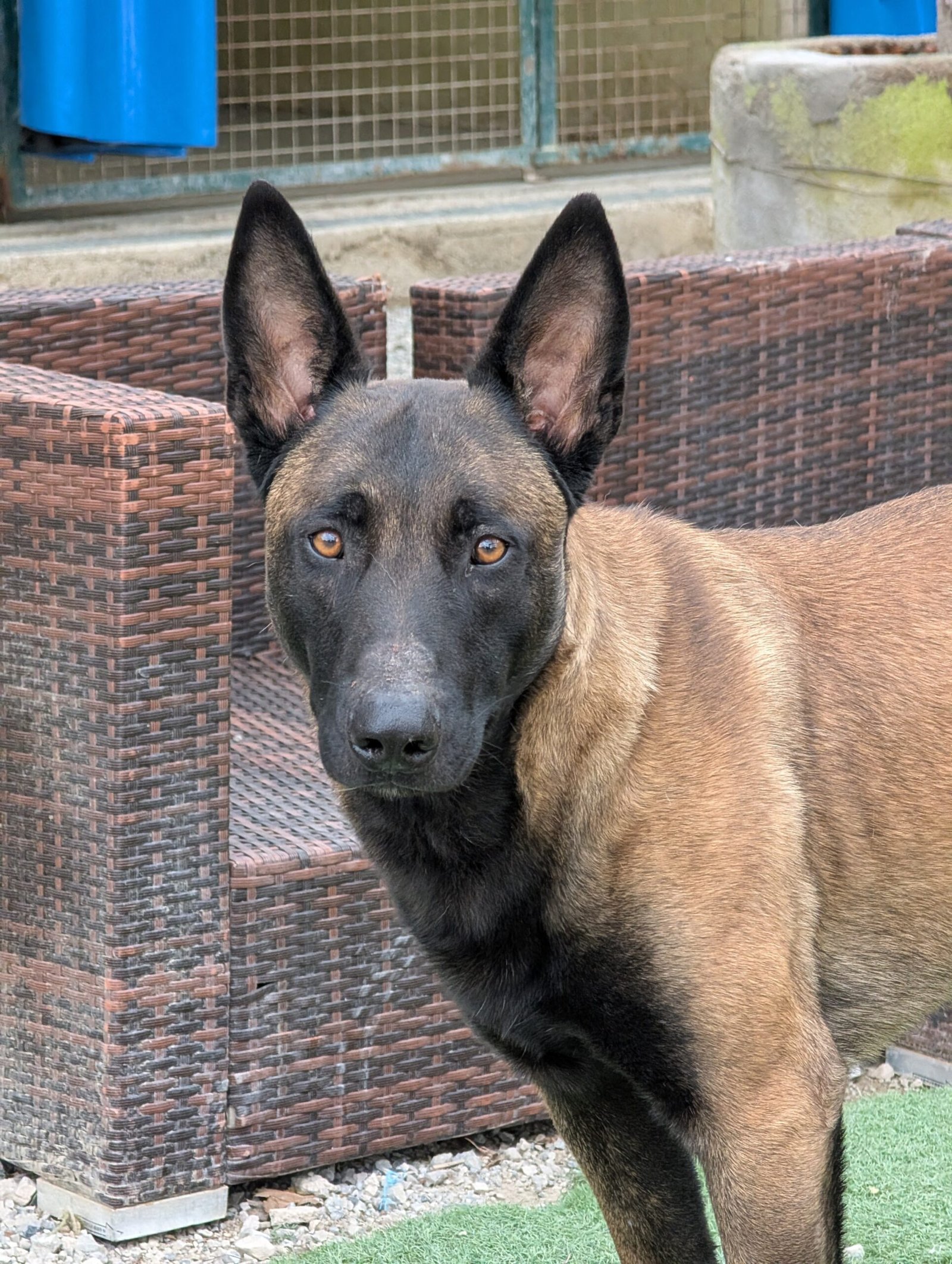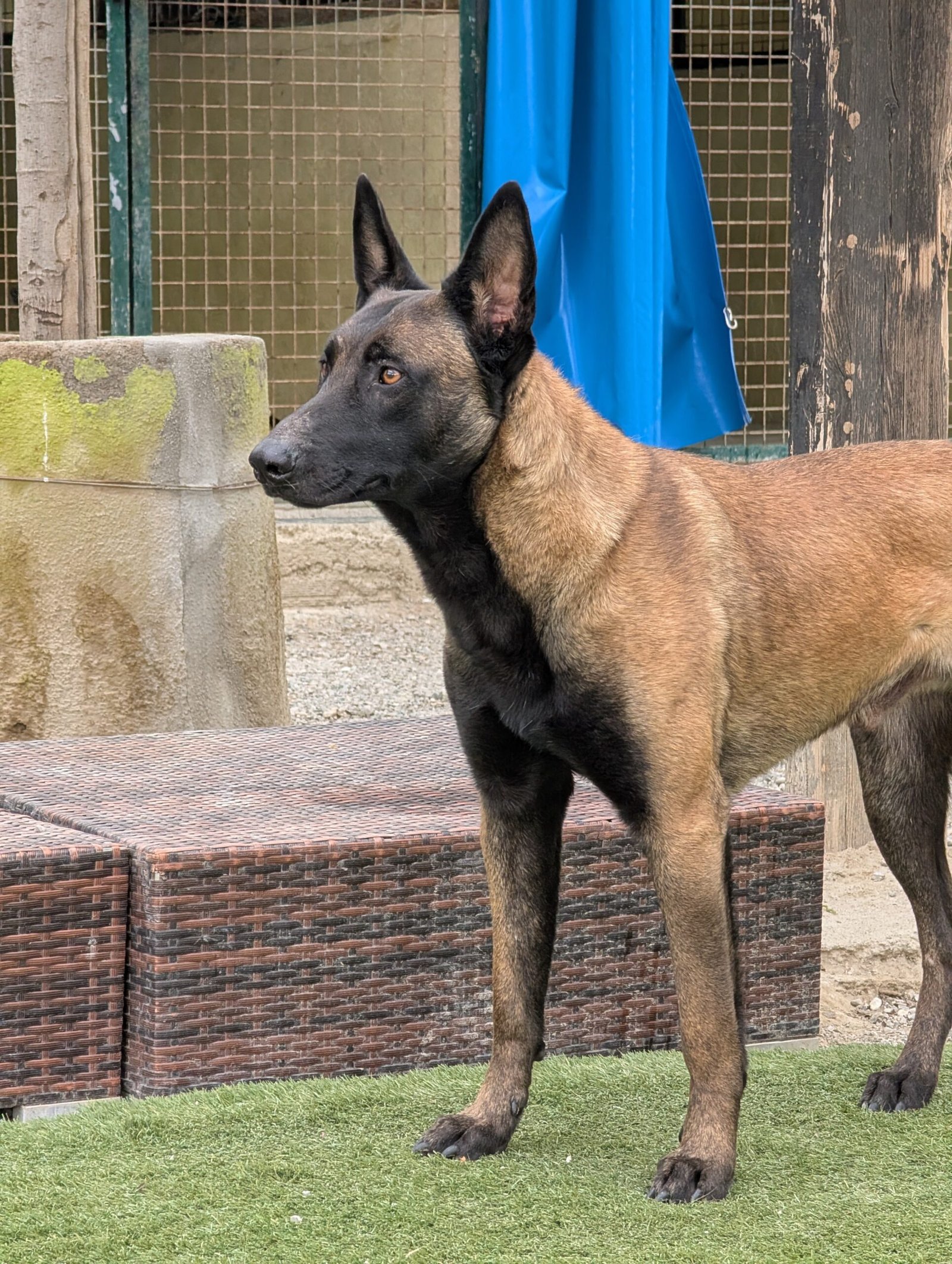 Raki es un malinois jovencísimo, apenas un añito. Su comienzo en la vida no fue el mejor: recibió malos tratos cuando era cachorro y eso dejó una sombra de miedo e inseguridad que aún está aprendiendo a gestionar. Pero debajo de todo ese temblor emocional hay un perro bueno, noble y con enormes ganas de vivir.